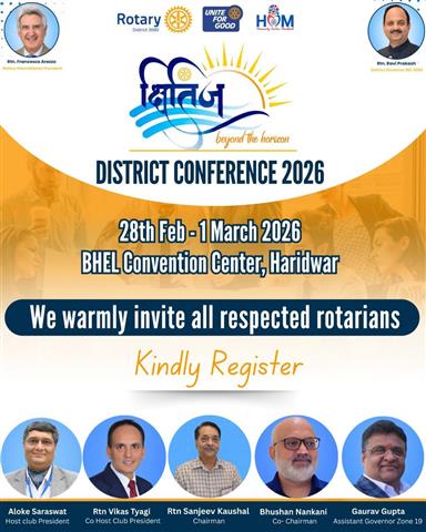 The District Conference KHITIJ, to be held in the holy city of Haridwar on 28th February and 1st March, is the most important gathering of our Rotary year—a celebration of our collective achievements and a platform to inspire greater action in the months ahead.